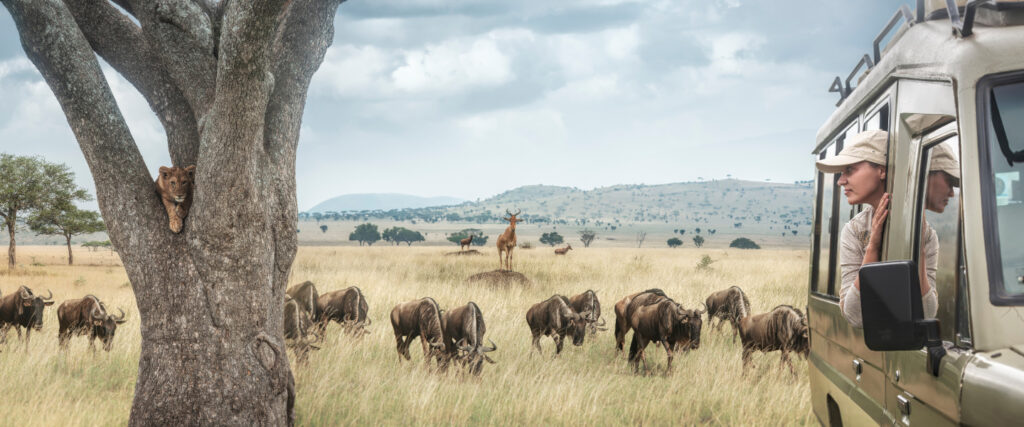 If you’re looking to explore the rich culture, many natural wonders and incredible wildlife viewing of Tanzania, then you’re in the right place. Visit the iconic Serengeti National Park with us, home of the Great Wildlife Migration where you’ll see millions of animals, from wildebeest to zebra to lions, cross this stunning grassland landscape. Or why not take a safari tour In Gombe National Park, where you can observe chimpanzees in their natural habitat. We also offer tours to Tarangire National Park where you have the incredible opportunity to see the majesty of large elephant herds in the wild and over 400 species of bird.